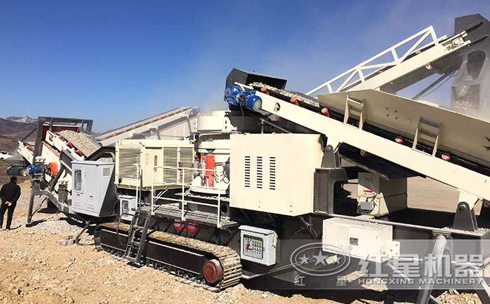移动式破碎机采用半车体式结构,体积小,不受场地限制